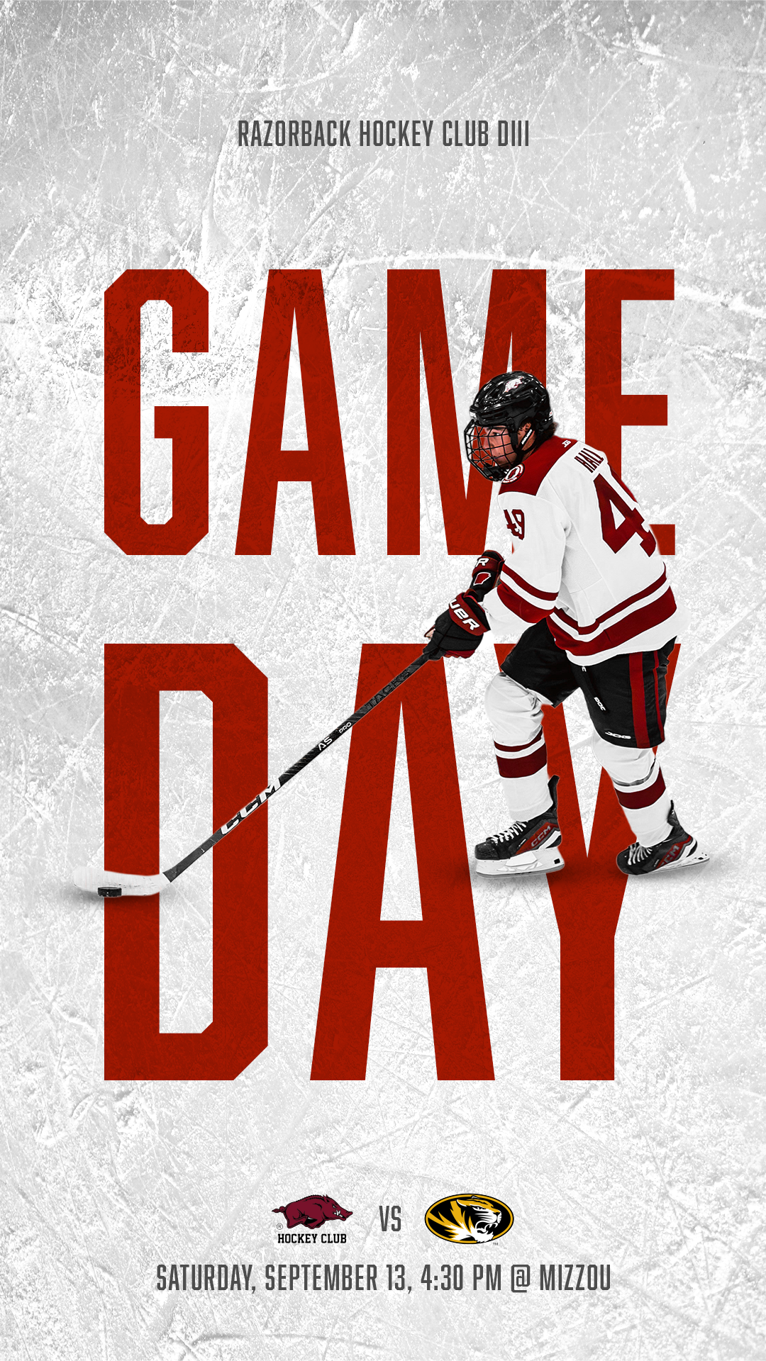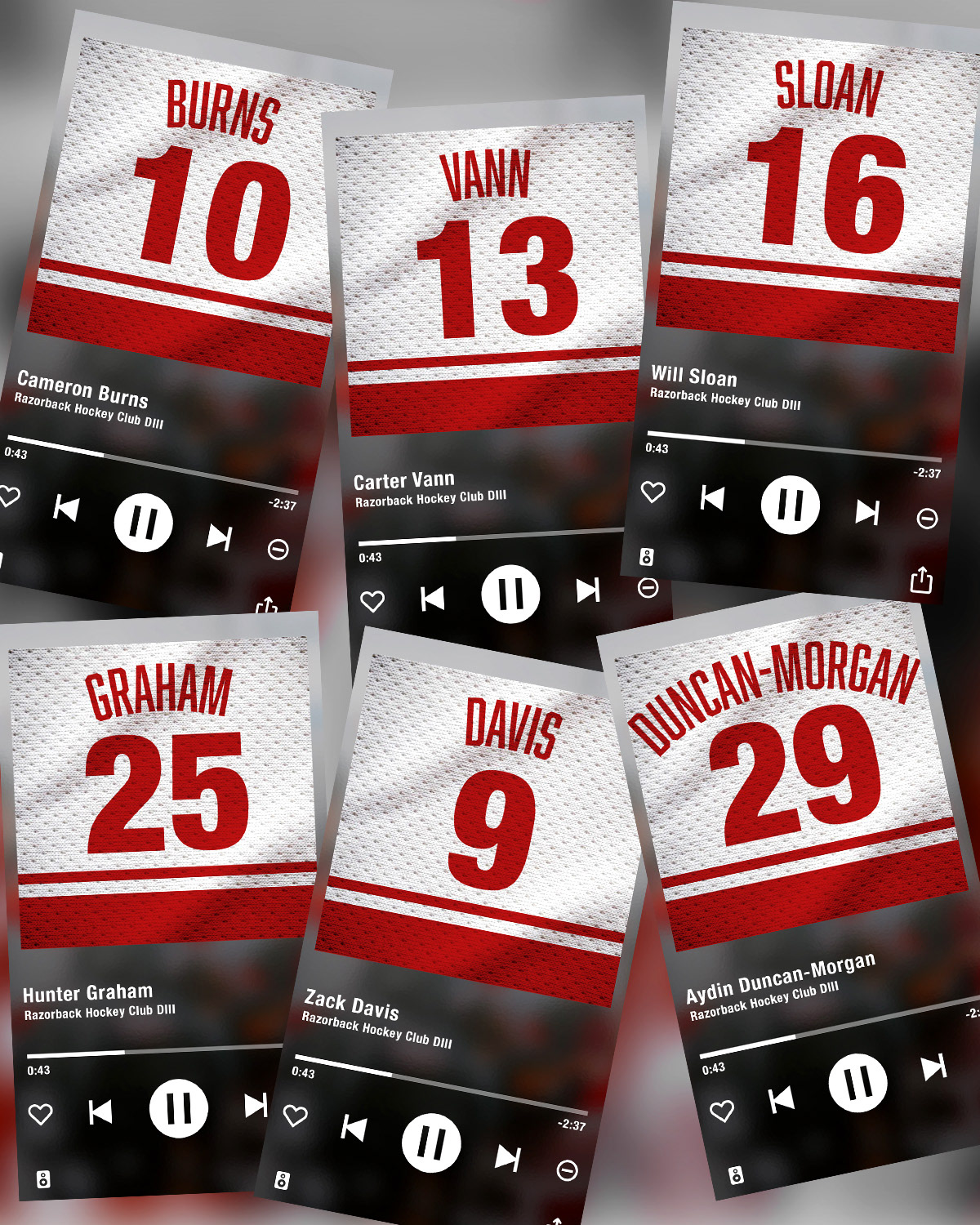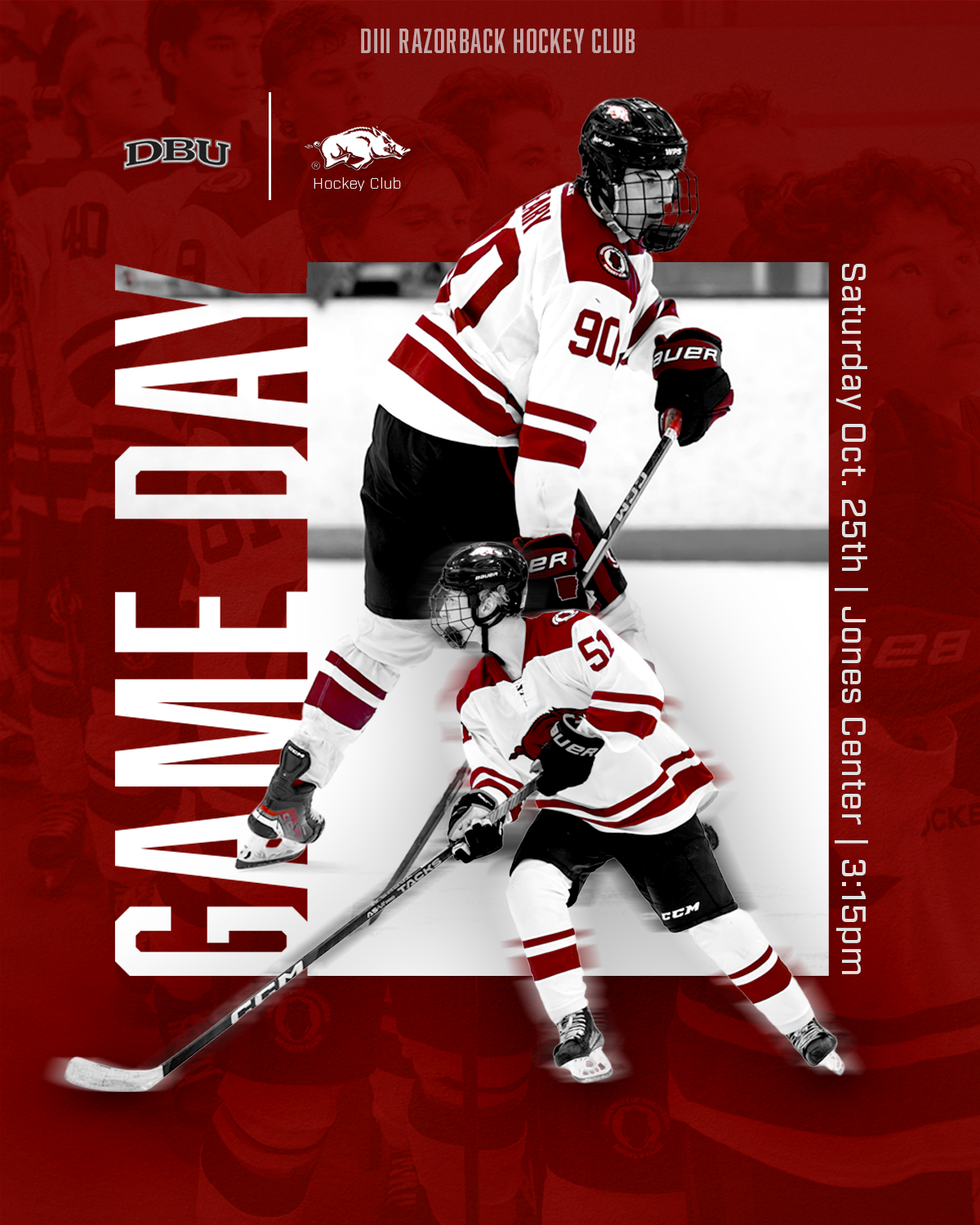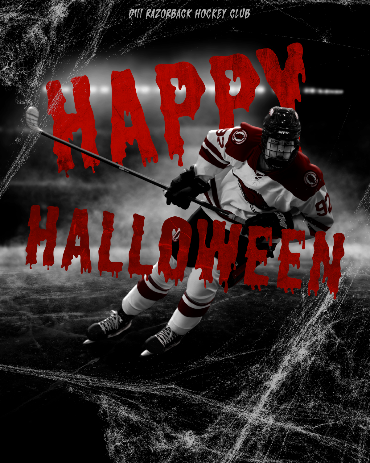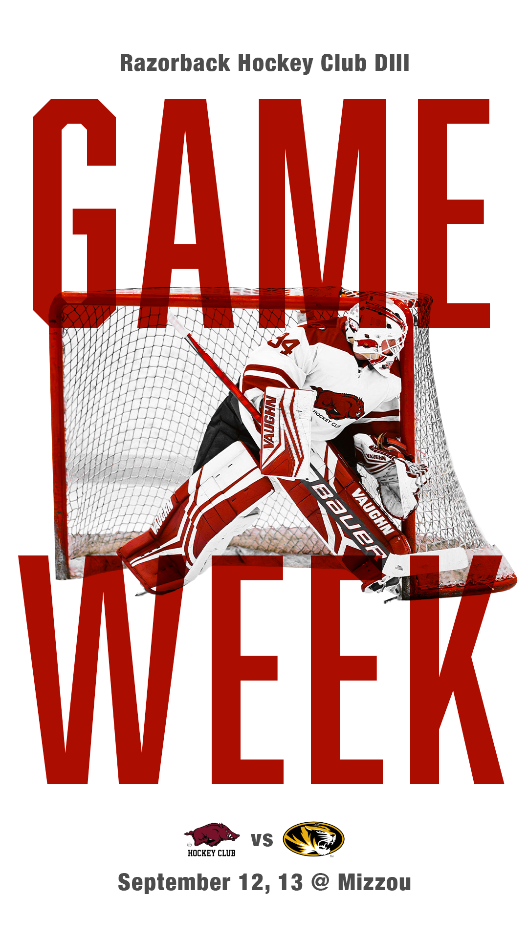 These are social media posts for the D3 Razorback Hockey Club. All game-week posts are feed posts and game-day are story posts, apart from home games which get a feed post. Along with game information we also made posts for holidays, birthdays, and other specials events that were important to the hockey club.
