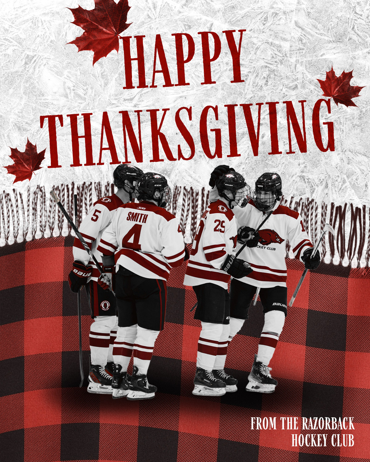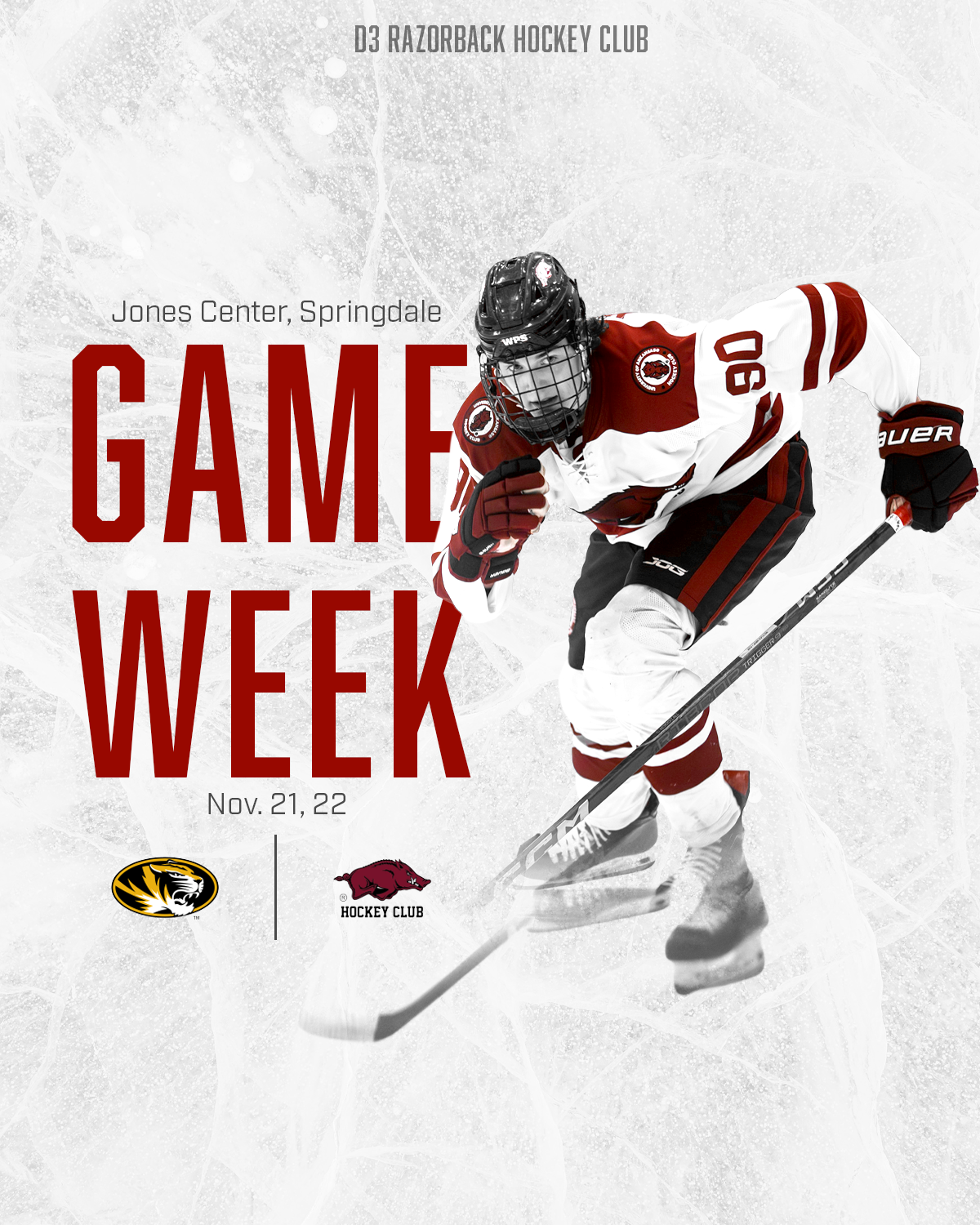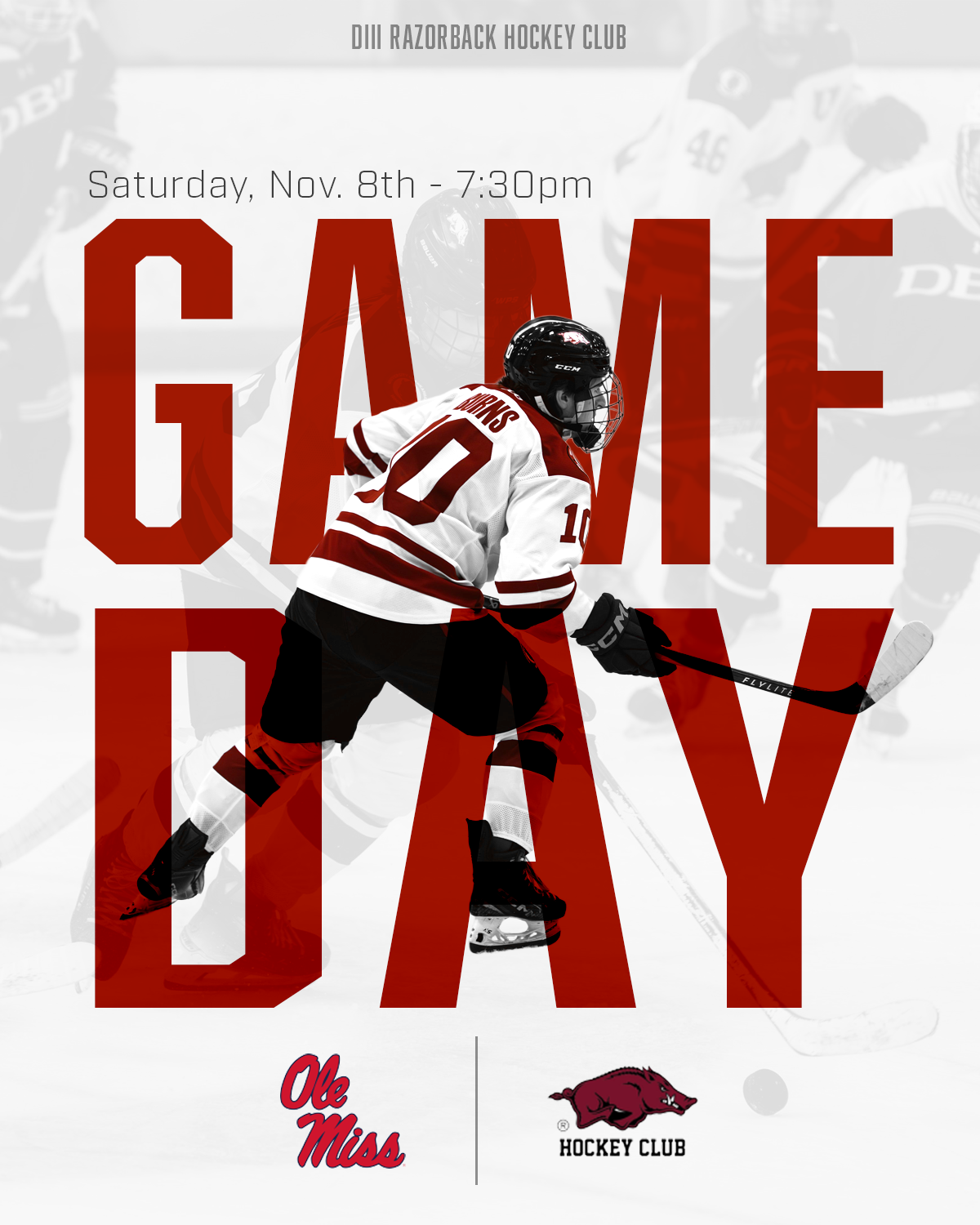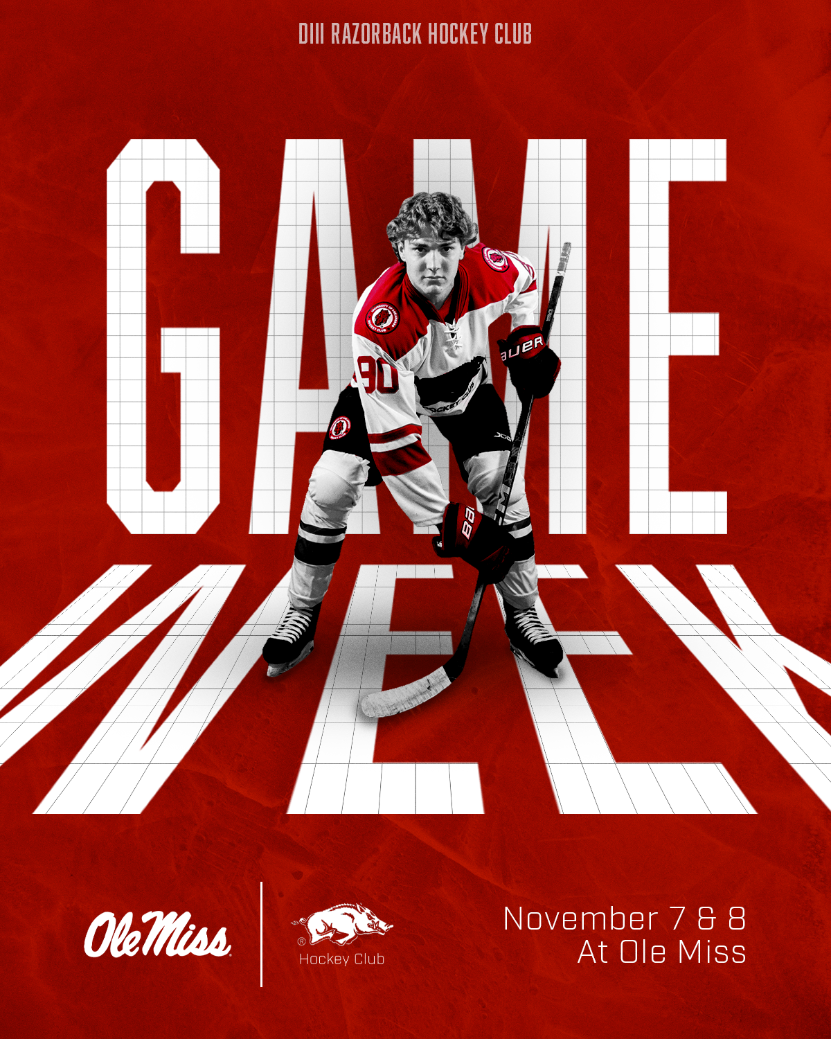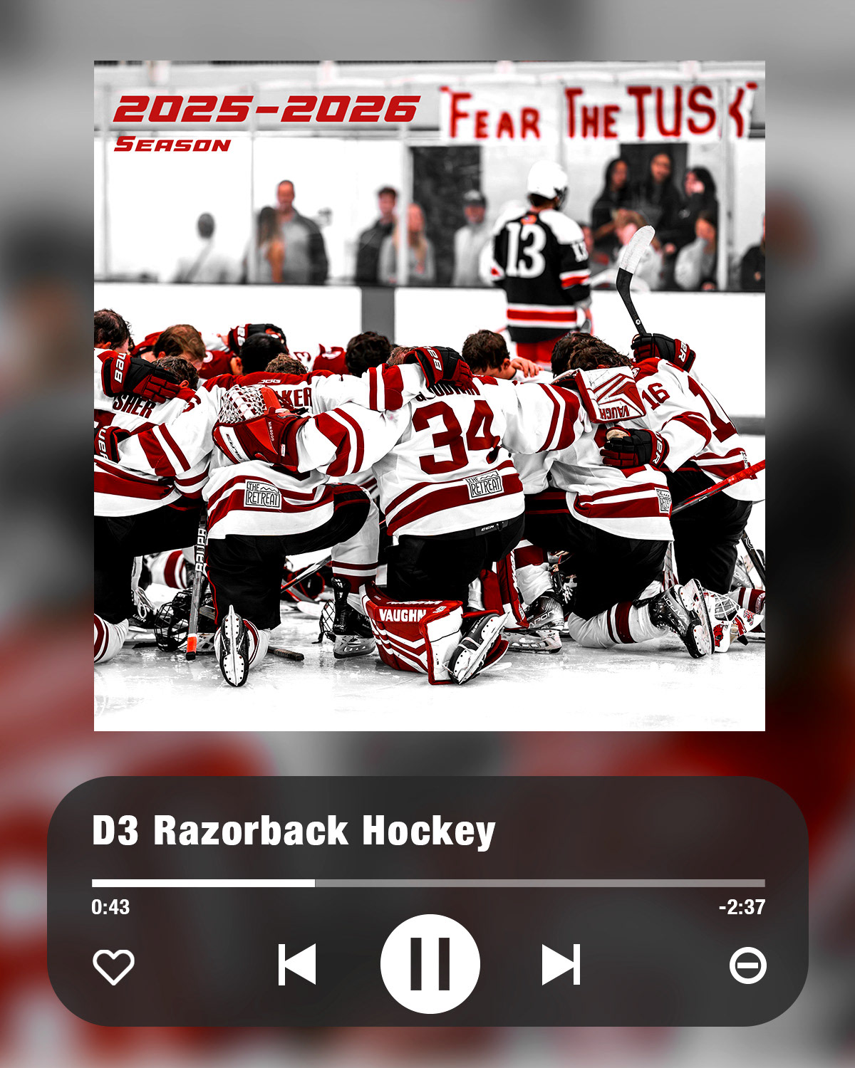 These are social media posts for the D3 Razorback Hockey Club. All game-week posts are feed posts and game-day are story posts, apart from home games which get a feed post. Along with game information we also made posts for holidays, birthdays, and other specials events that were important to the hockey club.